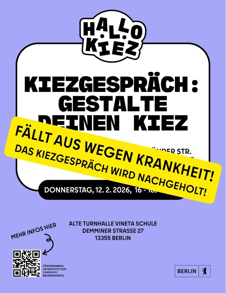 Die Stadtteilkoordination Brunnenstraße Nord lädt herzlich zu einer Informations- und Dialogveranstaltung rund um aktuelle Entwicklungen im Brunnenviertel ein. Im Mittelpunkt steht der Campus im Brunnenviertel, bestehend aus der Vinetaschule und…
