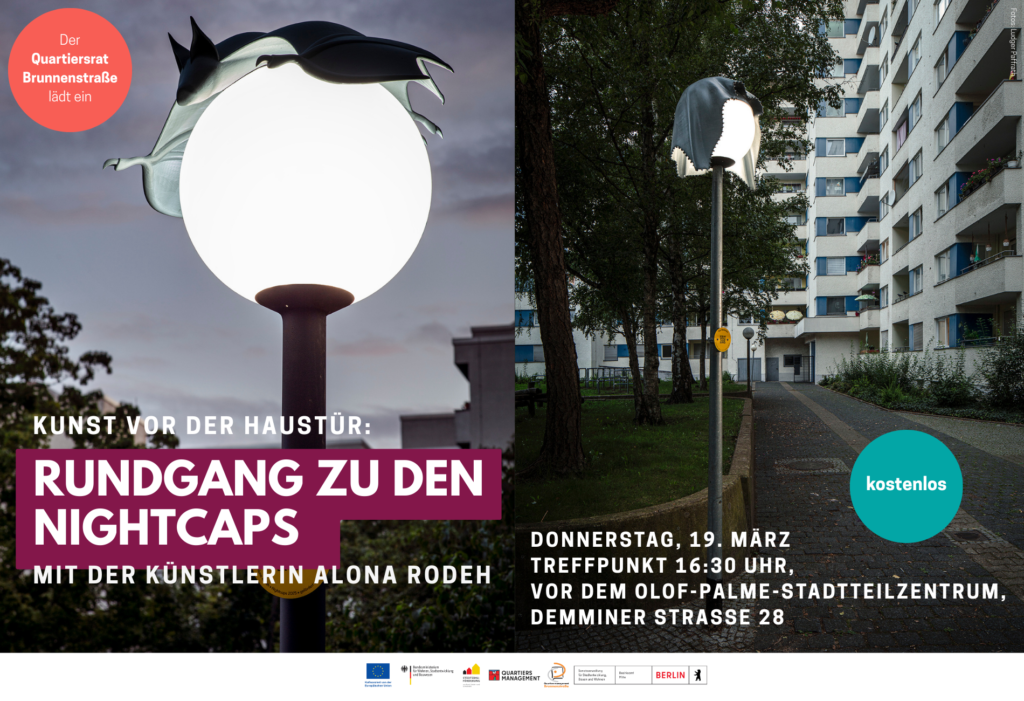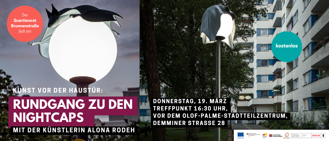 Kunst vor der Haustür: Geführter Rundgang zu den Nightcaps im Brunnenviertel am Donnerstag, 19. März