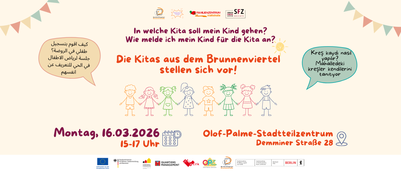 Die Kitas im Brunnenviertel stellen sich vor: Kitabörse am Montag, 16. März