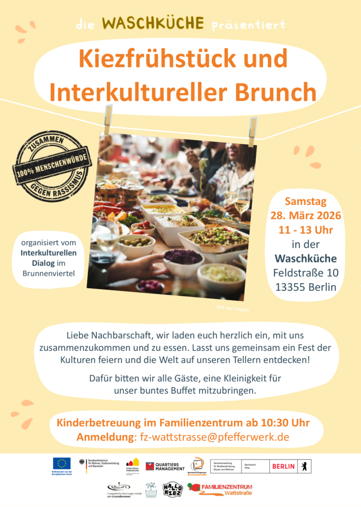 Auch wir vom QM Brunnenstraße sind wieder mit dabei. Im Rahmen des Interkulturellen Dialogs organisieren wir einen Interkulturellen Brunch.