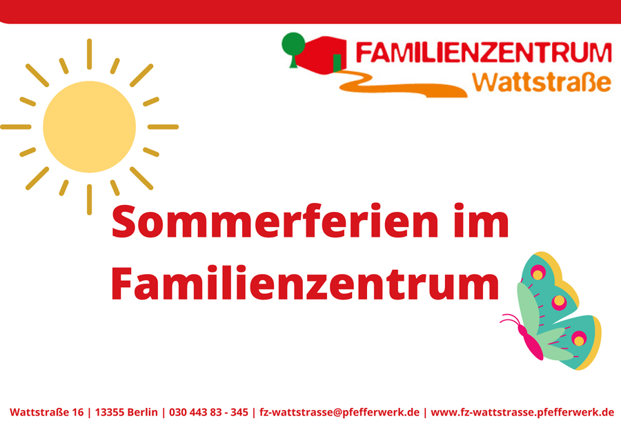 weiter lesenWährend der Ferienzeit ist das Familienzentrum Wattstraße durchgängig für Familien und die Nachbarschaft geöffnet. Das bunte und spannende Sommerferienprogramm findet vom 11. bis 27. Juli statt. Kinder bis 6 Jahre…