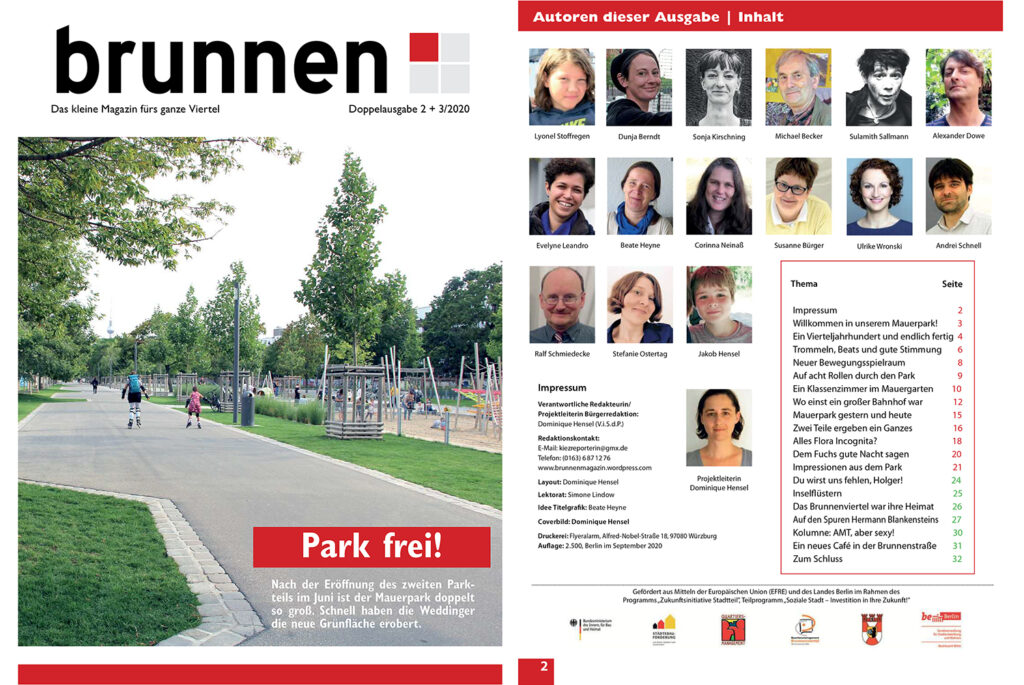 weiter lesenDie Bürgerredaktion im Brunnenviertel feiert die Fertigstellung des Mauerparks mit einer eigenen Ausgabe des Kiezmagazins. Das Heft erscheint unter der Überschrift „Park frei!“ am 21. September. Weil die Sommerausgabe des…